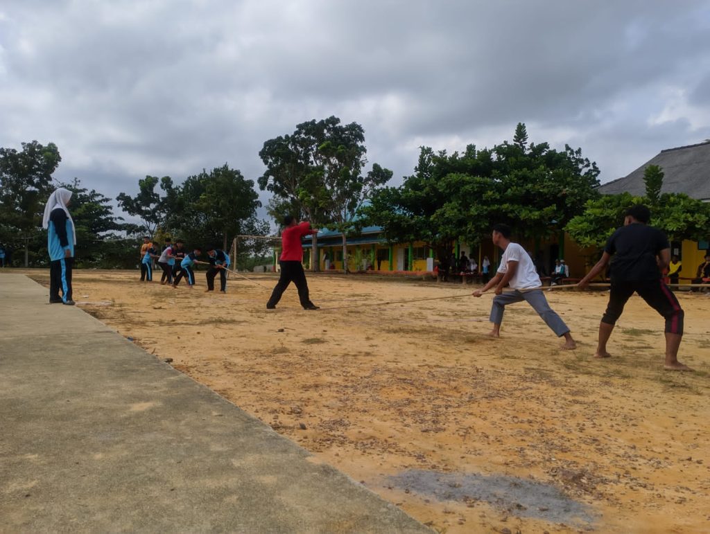 “Pertama lomba tarik tambang. Yang kedua lomba estapet bola; yang ketiga lomba rebut kursi”.