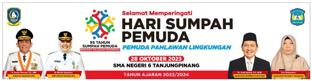 Senggarang, SMANSix_ Dalam rangka memeringati Hari Sumpah Pemuda yang ke-95, seluruh warga SMA Negeri 6 Tanjungpinang melaksanakan upacara bendera dengan memakai baju adat khas Melayu, lengkap dengan kain songket dan tanjak, pada Senin, 30 Oktober 2023. Dilansir dari Kementerian Pemuda Dan Olahraga (Kemenpora) Republik Indonesia, tema yang diusung dalam peringatan Hari Sumpah Pemuda kali ini adalah “Bersama majukan Indonesia”. Tema tersebut mengajak seluruh komponen bangsa untuk menjadikan budaya gotong royong dan tolong menolong sebagai unsur penting dalam national character building.