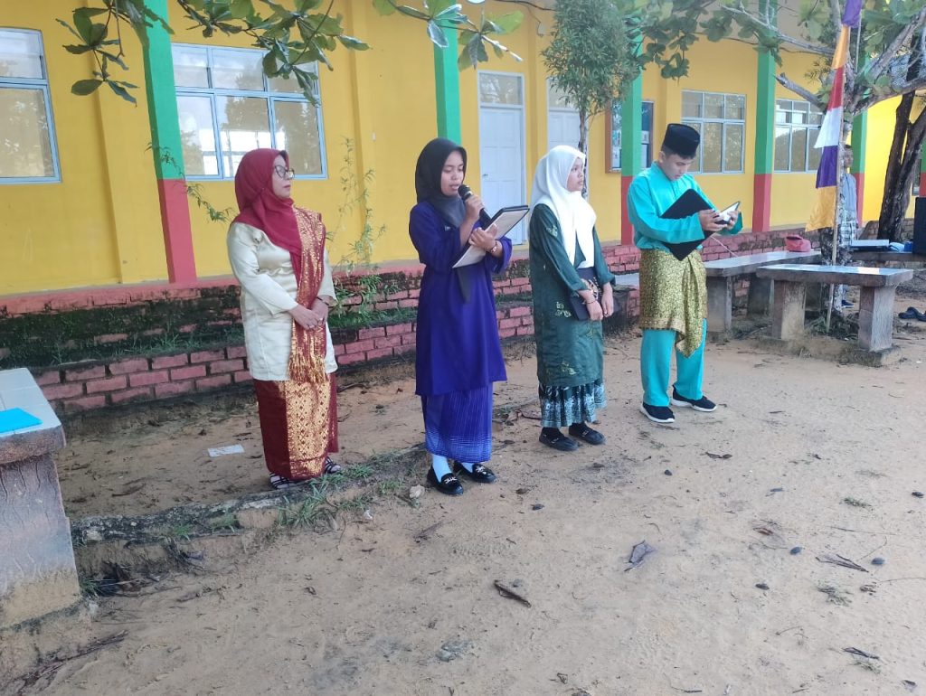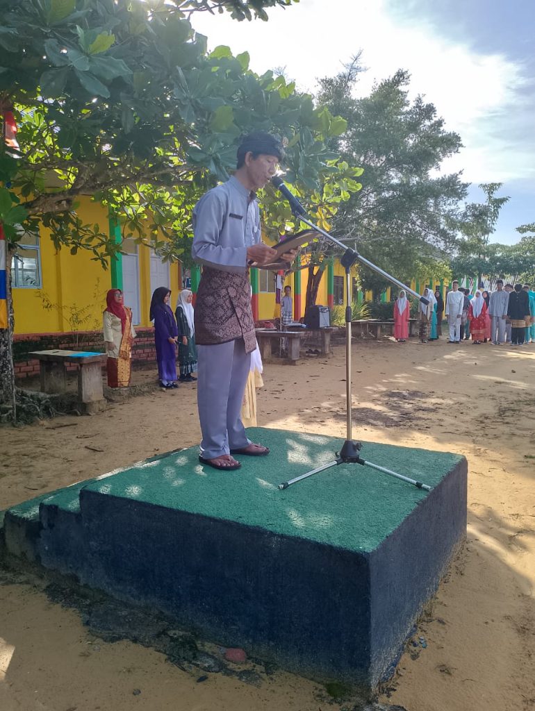 Sapiril Pohan sedang membacakan pidato Menteri Kemendikbudristek